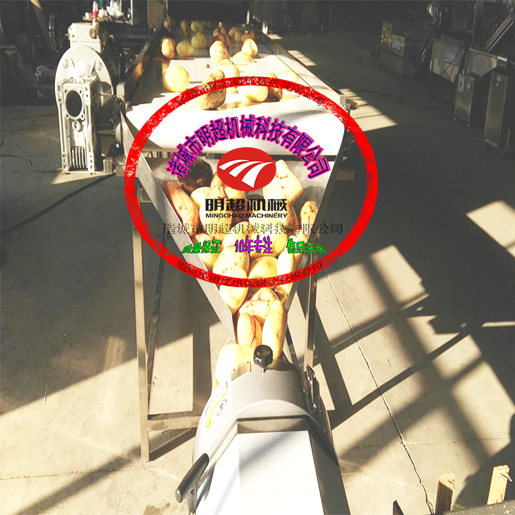 6.多功能切菜機可用于凈菜加工中的切片、切絲、切塊,可用于蘿卜、土豆、山藥、黃瓜、元蔥、菠蘿、香蕉等莖桿狀物料的分切。自動定向,片形整齊,厚薄均勻。