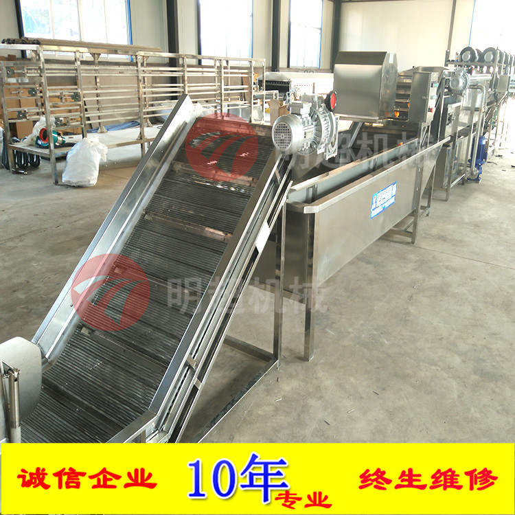 蔬菜是我們目前生活的消耗品,伴隨著市場(chǎng)經(jīng)濟(jì)的競(jìng)爭(zhēng)和社會(huì)的進(jìn)步,蔬菜消費(fèi)需求逐漸由數(shù)量型向質(zhì)量型轉(zhuǎn)變,發(fā)展凈菜加工流水線、是今年的大趨勢(shì),凈菜清洗加工成套流水線主要針對(duì)商超、大中院校、機(jī)關(guān)食堂、餐飲企業(yè)、凈菜配送、大型蔬菜批發(fā)市場(chǎng)等等,我國(guó)凈菜剛剛起步,還沒(méi)有國(guó)外發(fā)達(dá)國(guó)凈菜產(chǎn)業(yè)發(fā)展的成熟和完善,明超機(jī)械以?xún)舨思庸橹?,帶?dòng)整個(gè)凈菜產(chǎn)業(yè)鏈上的各種技術(shù)服務(wù)和,同時(shí)出國(guó)考察,努力根據(jù)我國(guó)凈菜標(biāo)準(zhǔn),所研發(fā)出來(lái)的凈菜清洗加工成套流水線,暢銷(xiāo)全國(guó),銷(xiāo)售良好,下面就介紹一下凈菜是如何加工: