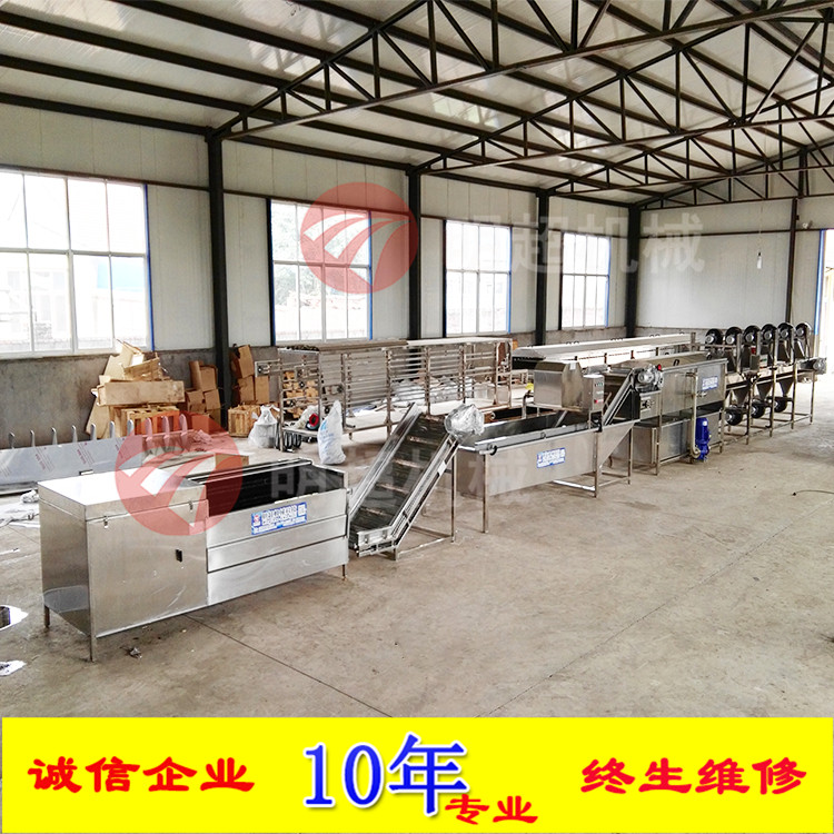 第二:根莖類(lèi)蔬菜加工凈菜工藝流程:提升機(jī)→毛輥去皮清洗機(jī)→毛輥清洗機(jī)→提升機(jī)→雙層輸送切菜線→漂燙冷卻線→風(fēng)干瀝水機(jī)→二次潔凈挑選→包裝輸送線→全自動(dòng)包裝機(jī)或者多層烘干機(jī)和果蔬烘干房