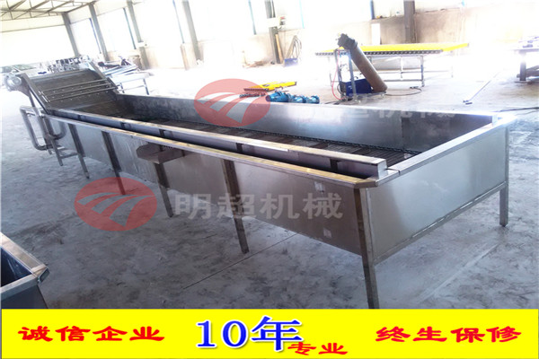 3. 清洗:根據(jù)所需清洗的蔬菜如果是葉類的可直接用翻浪式高壓氣泡清洗機清洗,如果是根莖類的蔬菜要先毛輥清洗機清洗去皮,然后進氣泡清洗機洗完后直接提升到下一步工序。