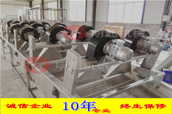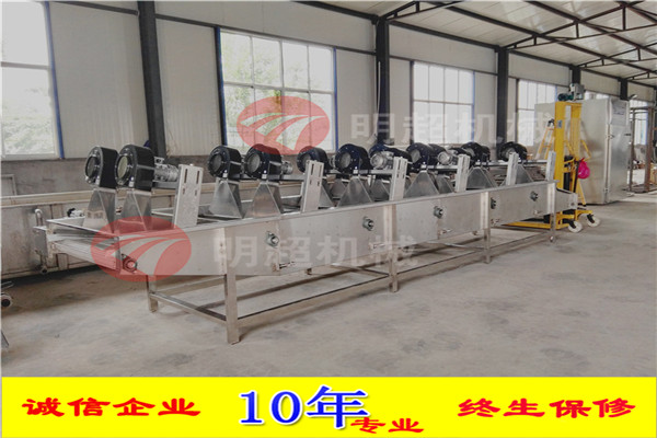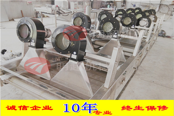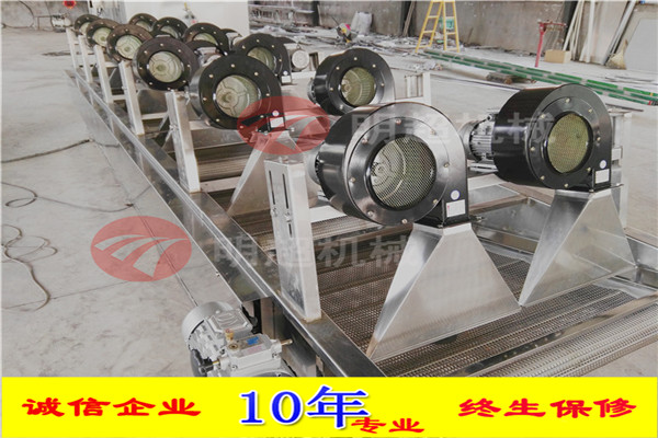 1.采用多次翻轉(zhuǎn)多臺(tái)風(fēng)機(jī)吹。采用低功率、低噪音的風(fēng)機(jī),吹風(fēng)口成風(fēng)刀狀,吹干風(fēng)溫為常用溫,有效保護(hù)物料本身的色澤和品質(zhì),效果更佳。