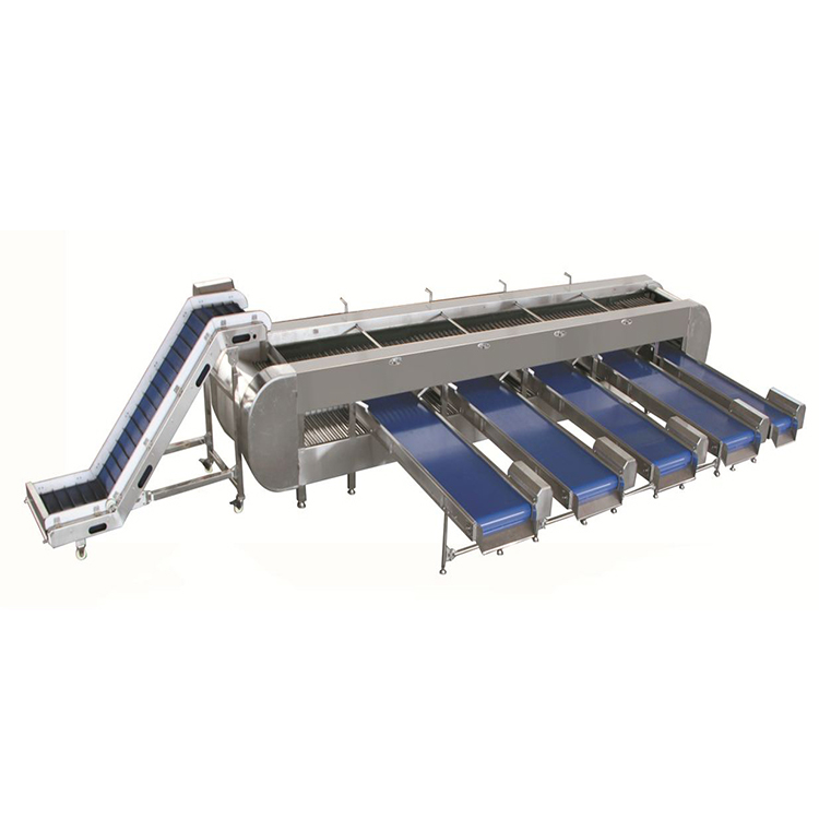 采用滾杠式的網(wǎng)帶互相交替分級,可分為5個級別,該機(jī)可按照果蔬的大小直徑進(jìn)行分級,可分為多個級別,胡蘿卜在進(jìn)行分級前,分級采用滾杠與滾杠之間的間隙進(jìn)行分級,胡蘿卜和滾杠之間均有的行走中逐漸拉開距離,管與管之間距離逐漸擴(kuò)大,所分級的產(chǎn)品由大到小分別漏下去,漏到設(shè)備下面的輸送帶上面,通過輸送帶輸送到筐子里面,分級過程中,不損傷胡蘿卜表皮,精度高,速度快,操作簡單。
