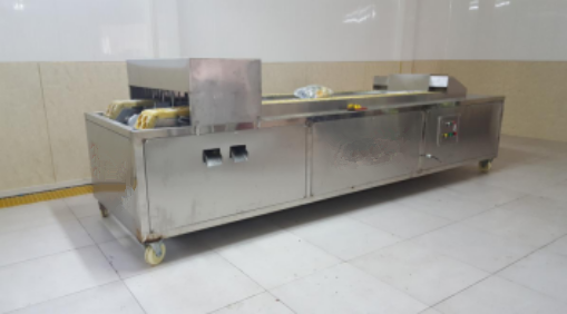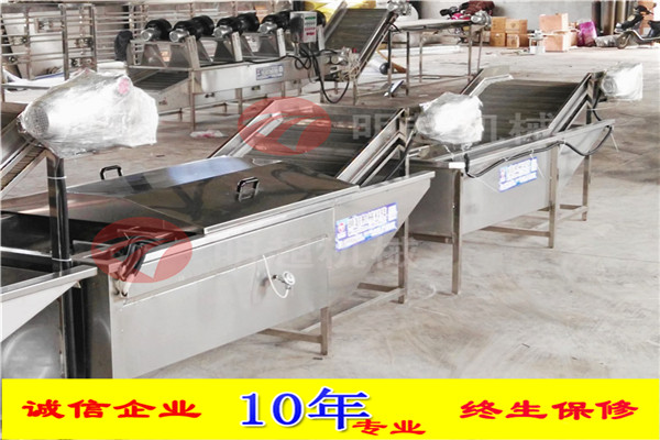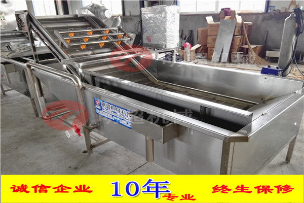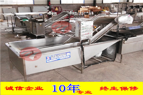 開始將沙果投入到設(shè)備里面浸泡,浸泡1小時,然后通過網(wǎng)帶輸送到殺青機(jī)里面,形成流水線。整機(jī)采用sus304不銹鋼制作,電機(jī)和鼓風(fēng)機(jī)除外。網(wǎng)帶速度可調(diào),水可循環(huán)利用