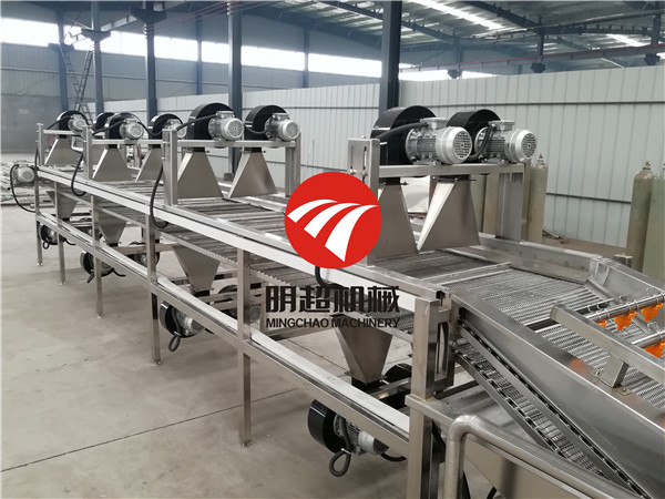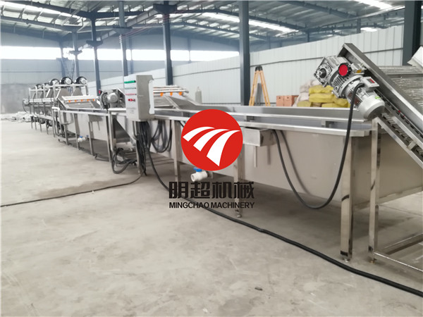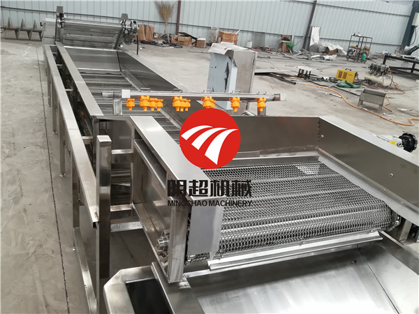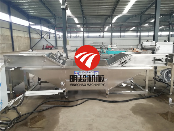 全自動(dòng)蔬菜清洗機(jī)工作原理大致是:首先需要清洗的蔬菜全部放入水槽,在高壓水流和強(qiáng)力氣泡的作用下,被充分打散、翻滾、清洗、傳送。蔬菜表面的泥沙會(huì)脫落,沉淀到底部隔離倉,防止了翻揚(yáng)回流造成再度污染。而從蔬菜上洗落下來的雜物和小蟲會(huì)漂浮在水面,然后被網(wǎng)孔收集,溢出水槽的水流被排除水箱,進(jìn)入尼龍袋中。蔬菜被蔬菜清洗機(jī)洗干凈后,再經(jīng)過噴淋的清洗,然后通過傳送帶送出,傳送帶末端有一個(gè)吹起裝置,沒有被清理掉的雜物吹落。蔬菜清洗機(jī)自帶水循環(huán)系統(tǒng),清洗槽和低貯水箱中的水在高貯的水箱中過濾后,再由離心泵加壓被送回水槽。耗水量較低,節(jié)水節(jié)能。所有附屬在清洗機(jī)上的裝置及構(gòu)件都可簡便安裝、拆卸和清洗。通過二至三臺(tái)的連接,可使清洗、去異物、殺菌、冷卻等工藝連續(xù)進(jìn)行。蔬菜清洗機(jī)主要部分皆采用不銹鋼制作,洗凈度高,能保持原有色澤。廣泛用于清洗葉菜類、食用菌類、水果、海產(chǎn)品和中草藥類等各類農(nóng)副產(chǎn)品。是當(dāng)今蔬菜加工、食品、餐飲等行業(yè)的設(shè)備。