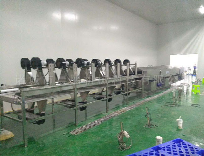 采用汽泡水浴清洗.本清洗機采用汽泡清洗,適用于葉類蔬菜的清洗,可根據(jù)產(chǎn)品的質量要求來定做。設備除電機、軸承等標準件外均采用不銹鋼SUS304/2B材料制作,完全符合出口食品衛(wèi)生要求。設備中設有氣泡發(fā)生裝置,使物料呈翻滾狀態(tài),去除產(chǎn)品表面農(nóng)殘功效,同時可加入適量的藥劑,進行消毒固色,漂浮物可以從溢流槽溢出,沉淀物從排污口排出,以達到清洗的目的。氣泡清洗機是針對外形要求高的物料設計,適用于:蔬菜、水果、水產(chǎn)品、中草藥等顆粒狀、葉狀、根莖類產(chǎn)品清洗、浸泡。