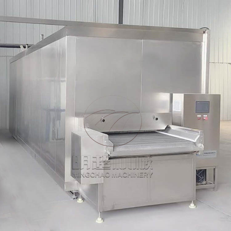 6、速凍設(shè)備:通過速凍機速凍紅薯,能保持紅薯原有的營養(yǎng)價值,速凍機是一種節(jié)能,多功能,多用途的一款經(jīng)濟實用速凍設(shè)備,可采用網(wǎng)帶式,柜式,鏈板式,防粘布等等,要根據(jù)每個物料的不同來選擇,主要由制冷系統(tǒng),速凍室,輸送系統(tǒng),控制系統(tǒng)等組成,可單獨實用,也可配套流水線使用,通過傳送帶輸送,然后經(jīng)過速凍室從速凍出口將速凍好的紅薯輸送出來,控制部位采用進口部件,采用了自動控溫,自動控制,解決了人控不足,制冷機采用了進口壓縮機,保證設(shè)備的運行可靠安全。