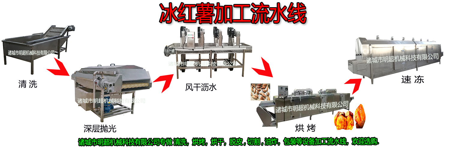 經(jīng)過清洗好的紅薯,進入紅薯烘烤設(shè)備烘烤好的紅薯直接進入速冷凍8小時,下面就來介紹一下冰紅薯加工操作流程: