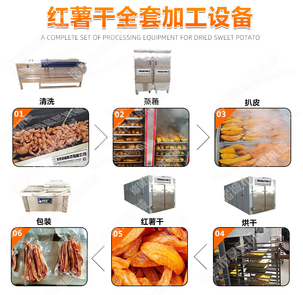 紅薯干加工設(shè)備需要設(shè)備有:紅薯清洗機,紅薯脫皮清洗機,紅薯蒸箱,紅薯烘干房,紅薯真空包裝機,紅薯拉伸膜包裝機等設(shè)備組成