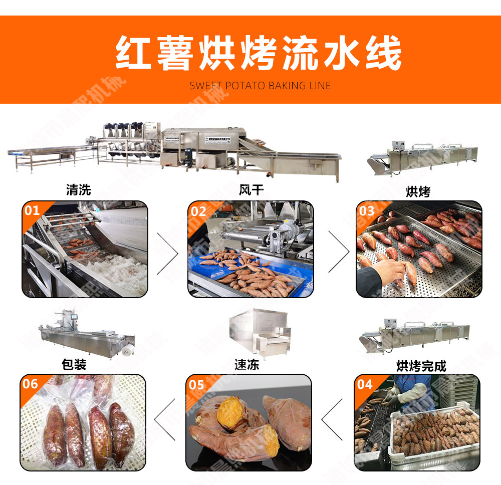 烤紅薯設(shè)備需要設(shè)備有:首先需要紅薯清洗機,紅薯上料機,紅薯烘烤線,紅薯冷卻機等組成