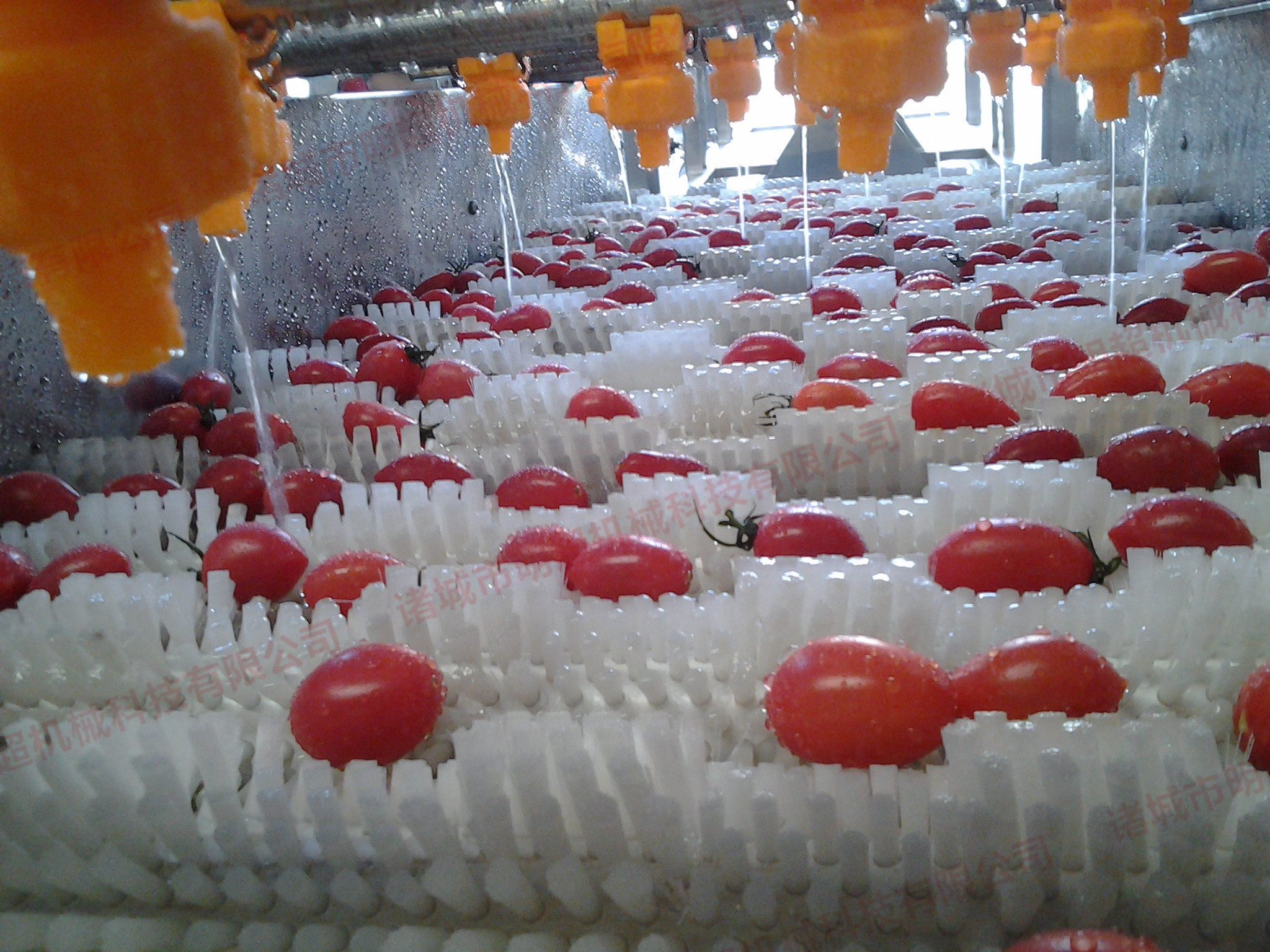 這種毛刷顧名思義就是刷毛在輥?zhàn)由系呐帕蟹绞骄褪窍駭嚮\上的螺旋片一樣,其根本目的也是為了增大刷輥與果蔬之間的接觸面積達(dá)到更好的污物刷除效果。將此結(jié)構(gòu)裝置在噴水管下方,與其作為蔬菜清洗機(jī)設(shè)計的第二級清洗裝置。這種清洗機(jī)更加適用與圣女果等表皮較軟,體積較小的作物。